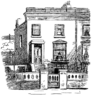 My clear wife Carrie and I have just been a week in our new house, "The Laurels,” Brickfield Terrace, Holloway - a nice six-roomed residence, not counting basement, with a front breakfast-parlour. We have a little front garden; and there is a flight of ten steps up to the front door, which, by-the-by, we keep locked with the chain up. Cummings, Gowing, and our other intimate friends always come to the little side entrance, which saves the servant the trouble of going up to the front door, thereby taking her from her work. We have a nice little back garden which runs down to the railway. We were rather afraid of the noise of the trains at first, but the landlord said we should not notice them after a bit, and took 2 pounds off the rent. He was certainly right; and beyond the cracking of the garden wall at the bottom, we have suffered no inconvenience.