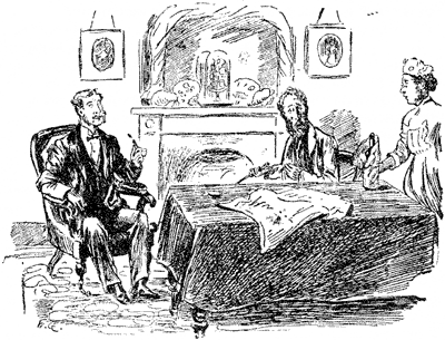 On arriving home at a quarter-past eleven, we found a hansom cab, which had been waiting for me for two hours with a letter. Sarah said she did not know what to do, as we had not left the address where we had gone. I trembled as I opened the letter, fearing it was some bad news about Mr. Perkupp. The note was: “Dear Mr. Pooter, - Come down to the Victoria Hotel without delay. Important. Yours truly, Hardfur Huttle.”
