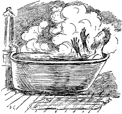 On moving my hand above the surface of the water, I experienced the greatest fright I ever received in the whole course of my life; for imagine my horror on discovering my hand, as I thought, full of blood. My first thought was that I had ruptured an artery, and was bleeding to death, and should be discovered, later on, looking like a second Marat, as I remember seeing him in Madame Tussaud’s. My second thought was to ring the bell, but remembered there was no bell to ring. My third was, that there was nothing but the enamel paint, which had dissolved with boiling water. I stepped out of the bath, perfectly red all over, resembling the Red Indians I have seen depicted at an East-End theatre. I determined not to say a word to Carrie, but to tell Farmerson to come on Monday and paint the bath white.