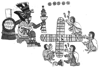 The Yumas played a game with two poles fifteen feet long and a ring a few inches in diameter. [Footnote: W. H. Emory, U. S. and Mexican Boundary Survey, Vol. I, p. 111.] Kane [Footnote: Kane’s Wanderings, p. 310; H. H. Bancroft’s Native Races, Vol. I, p. 280.] says that the Chualpays at Fort Colville on the Columbia “have a game which they call ’Alkollock,’ which requires considerable skill. A smooth, level piece of ground is chosen, and a slight barrier of a couple of sticks placed lengthwise is laid at each end of the chosen spot, being from forty to fifty feet apart and only a few inches high. The two players, stripped naked, are armed with a very slight spear, about three feet long, and finely pointed with bone; one of them takes a ring made of bone or some heavy wood and wound with cord. The ring is about three inches in diameter, on the inner circumference of which are fastened six beads of different colors, at equal distances, to each of which a separate value is attached. The ring is then rolled along the ground to one of the barriers and is followed at the distance of two or three yards by the players, and as the ring strikes the barrier and is falling on its side, the spears are thrown, so that the ring may fall on them. If any one of the spears should be covered by the ring, the owner counts according to the colored bead on it. But it generally happens from the dexterity of the players that the ring covers both spears and each counts according to the color of the beads above his spear. They then play towards the other barrier, and so on until one party has obtained the number agreed upon for the game.”